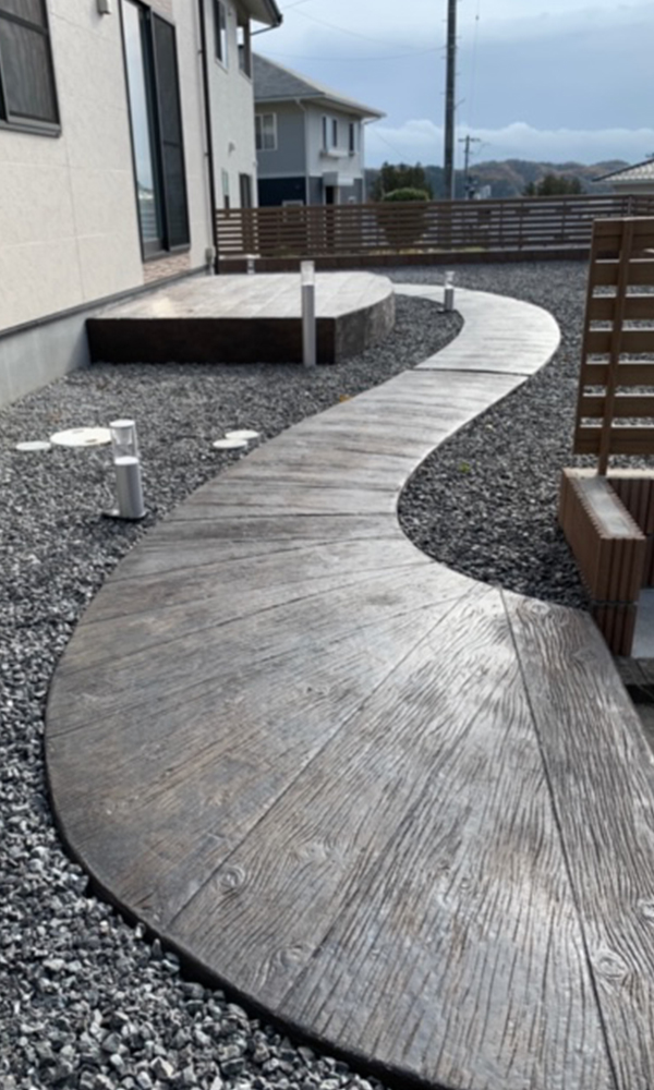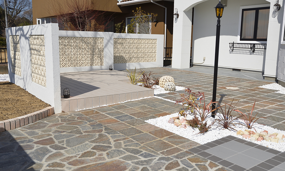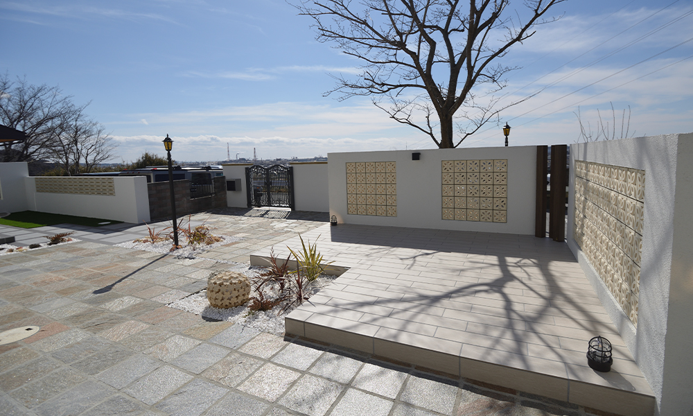 オリジナルの門柱や個性的なアプローチなど他には真似できないオンリーワンの外構設計デザインが特徴です。