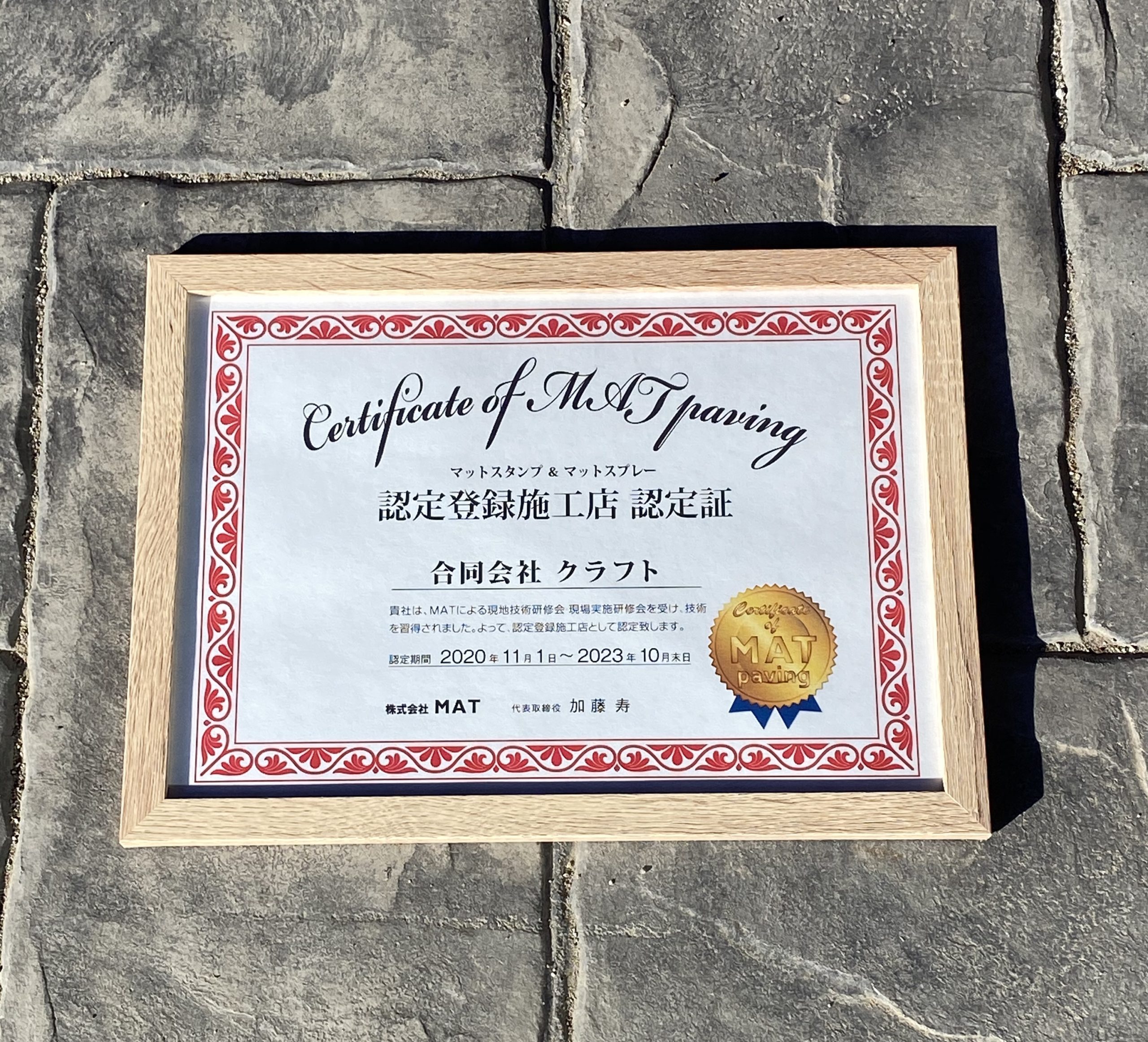 クラフトはMATスタンプコンクリートの認定登録施工店ですので、安心してお任せください。