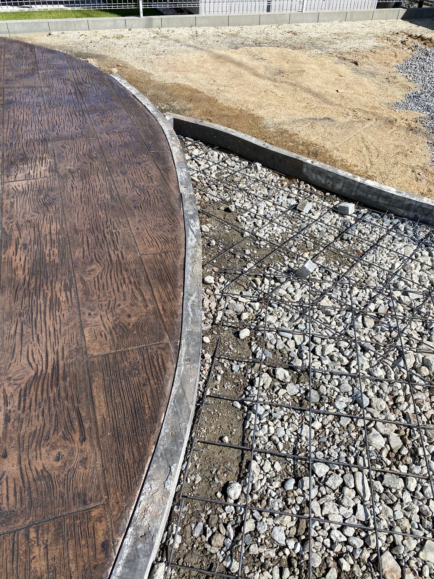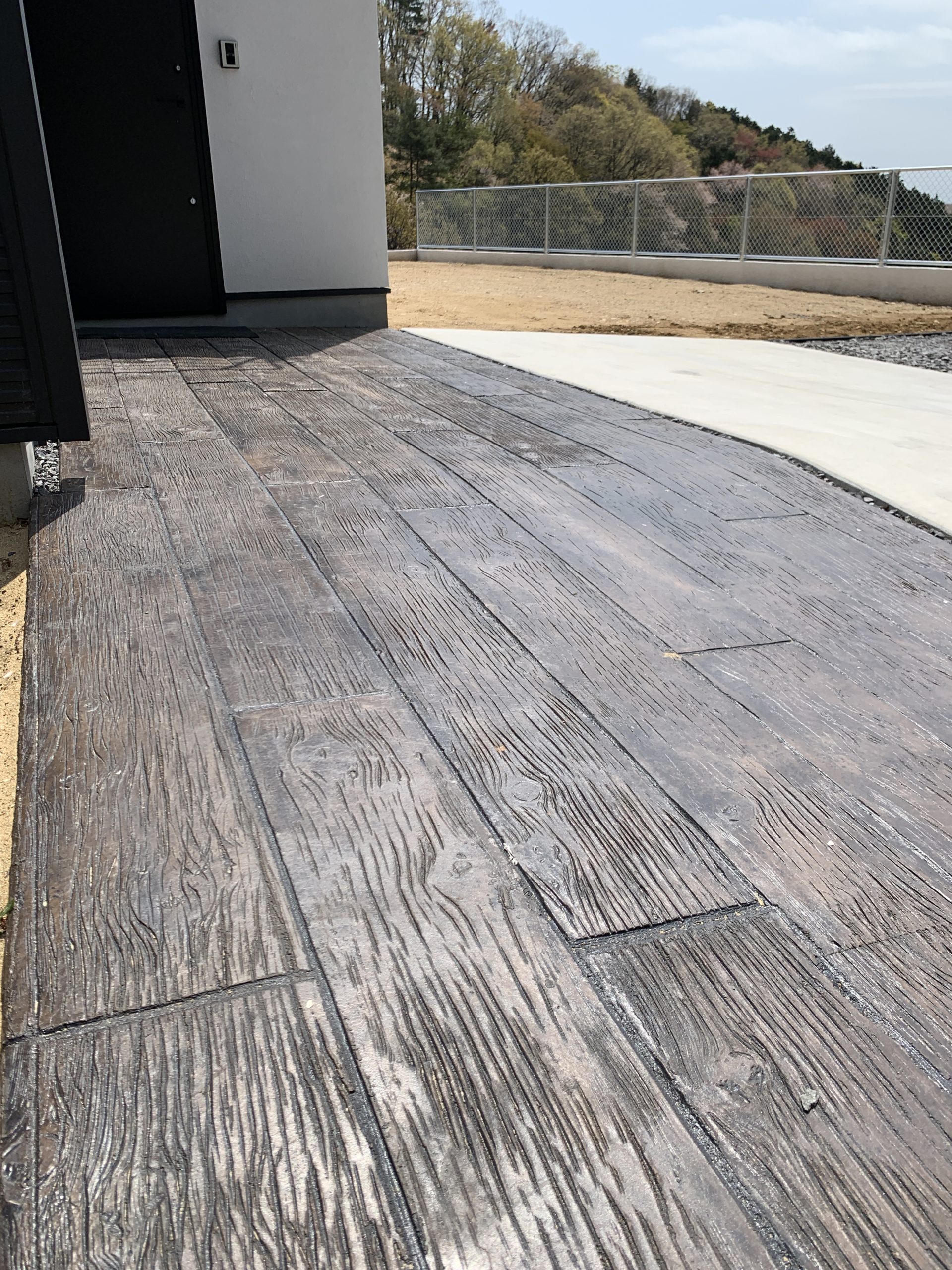 打設したコンクリートにスタンプを押すように、色と形を写し、自然石やウッドを表現する工法です。