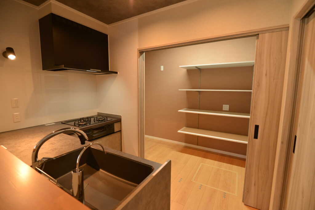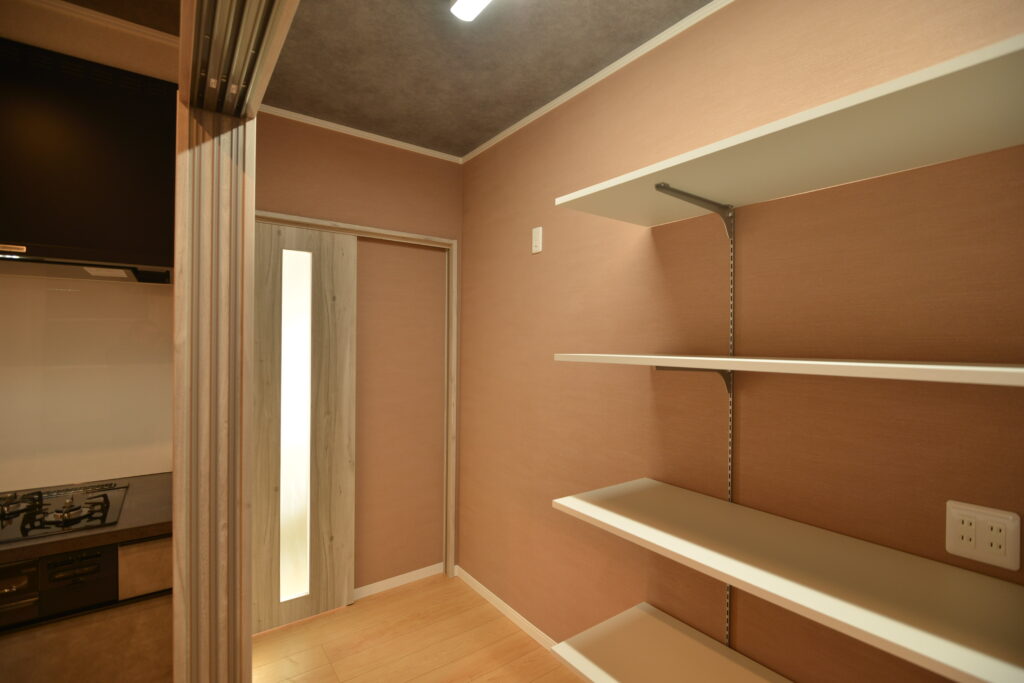 買い物をした時の荷物は、玄関からパントリーを通ってキッチン、リビングへと行くことのできる家事動線をつくり、ノンストップでの移動を可能にしています。