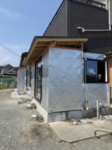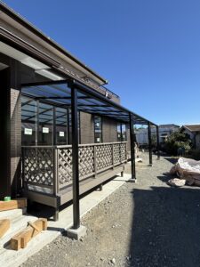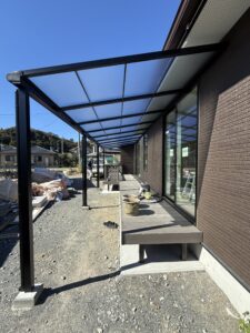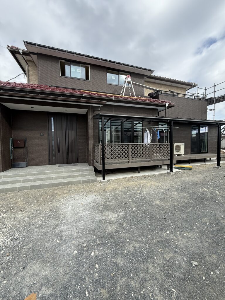 ☟外観も変わりました。リビングから寝室まで通しでテラスとデッキを付けました。