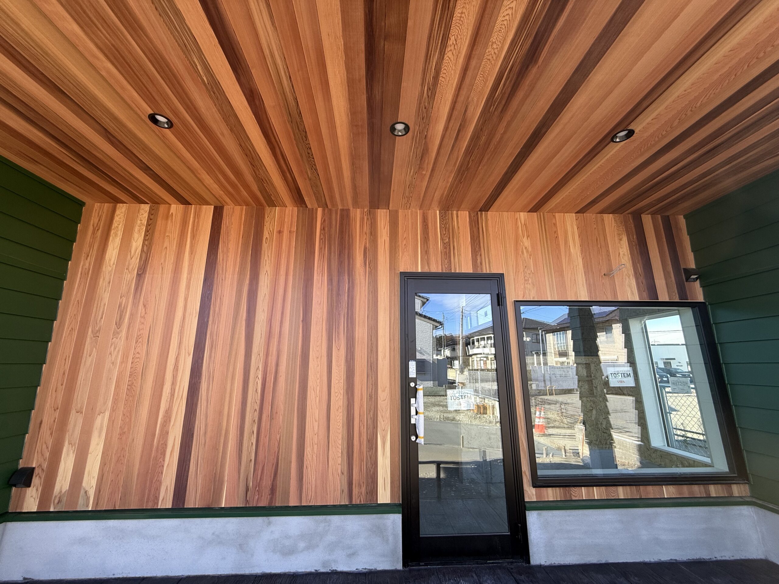 店舗の玄関にはレッドシダーを使用し、やさしくあたたかみのある表情で訪れる人を迎えます。