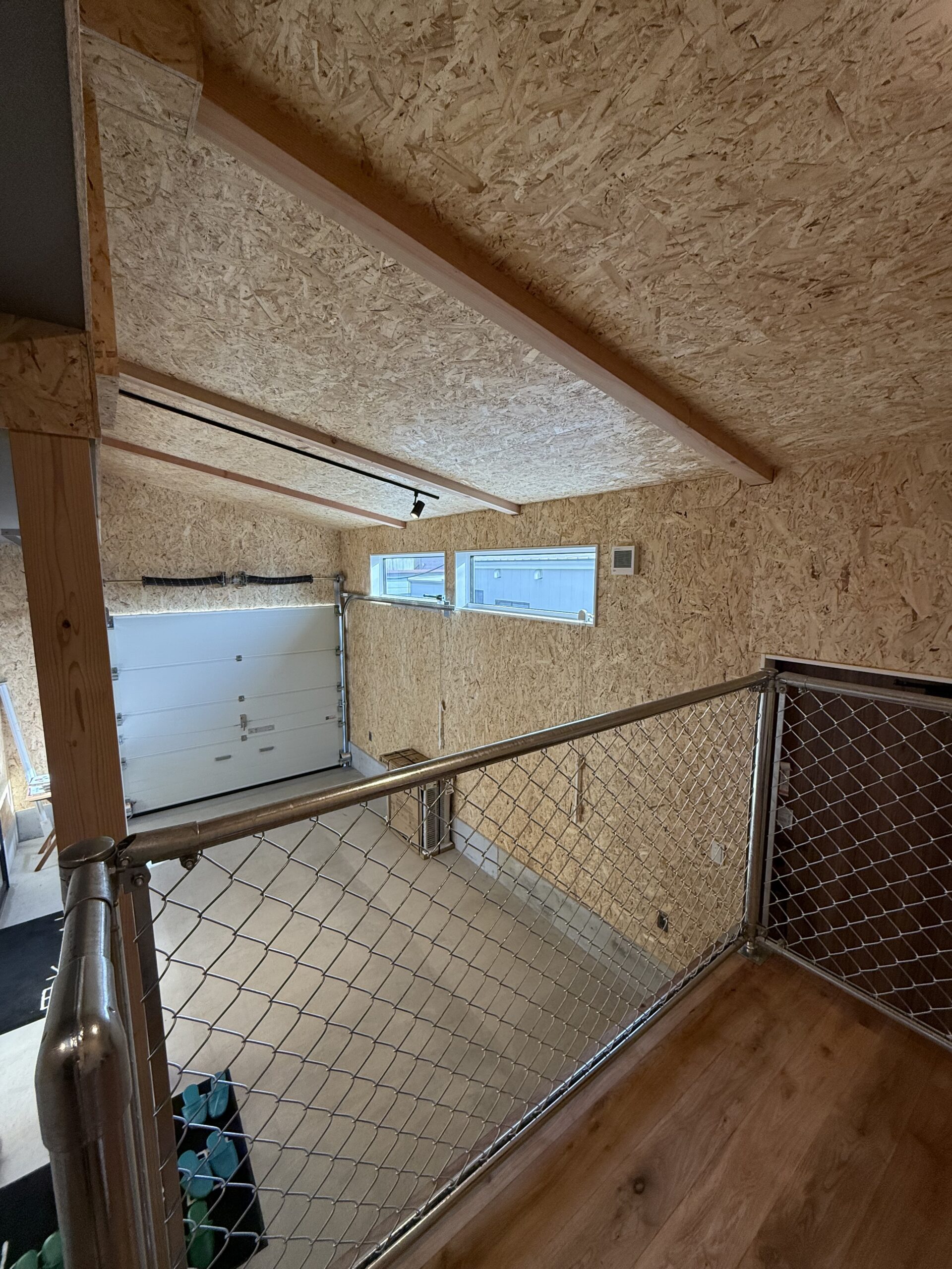 ガレージからは2階へ上がる階段とPCフェンスを使ったロフトを設け、自由に活用できる空間があります。