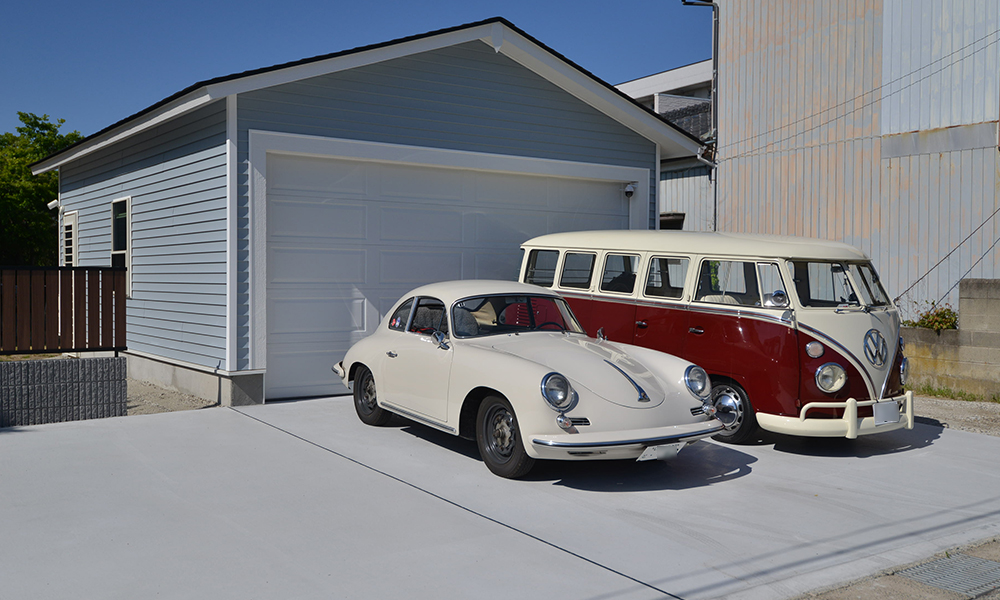 クラフトの設計施工するガレージは多種多様です。既製品の物置タイプはローコストで工期も最短。